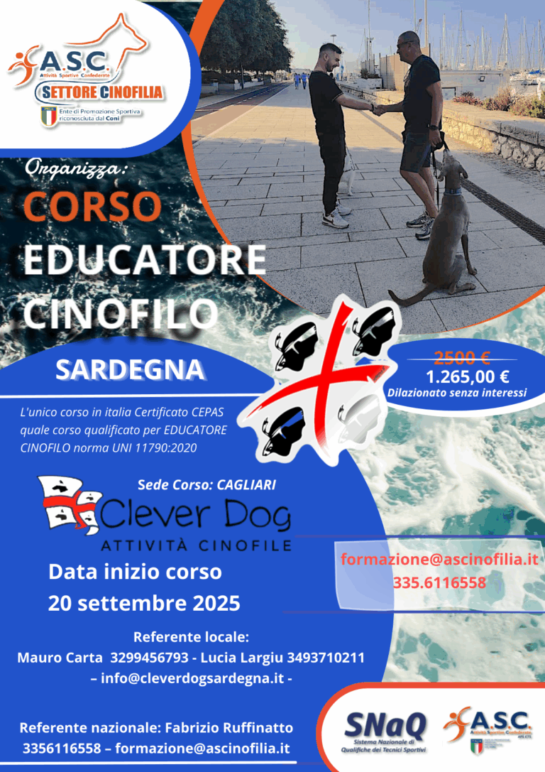 • Corso Educatore Cinofilo Sardegna 2025 – 2026